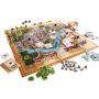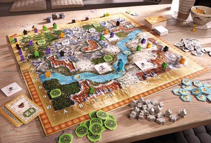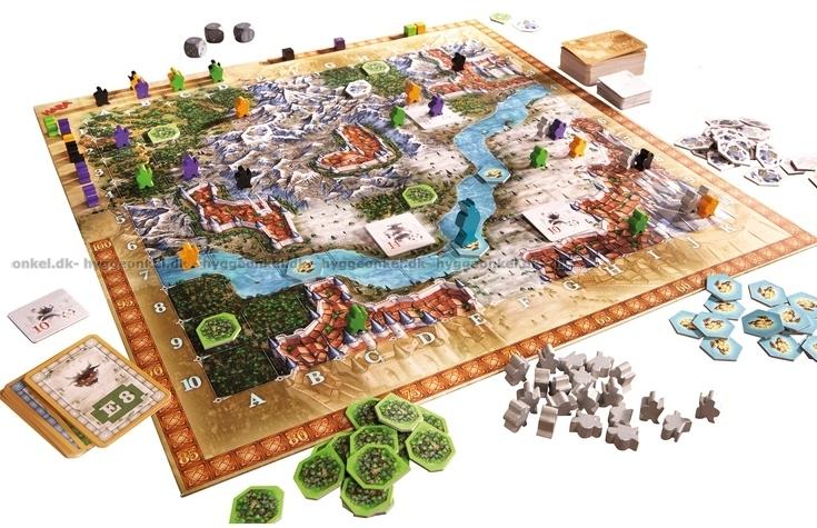 1 spillebrett, kort, markører, terninger og trebrikker.