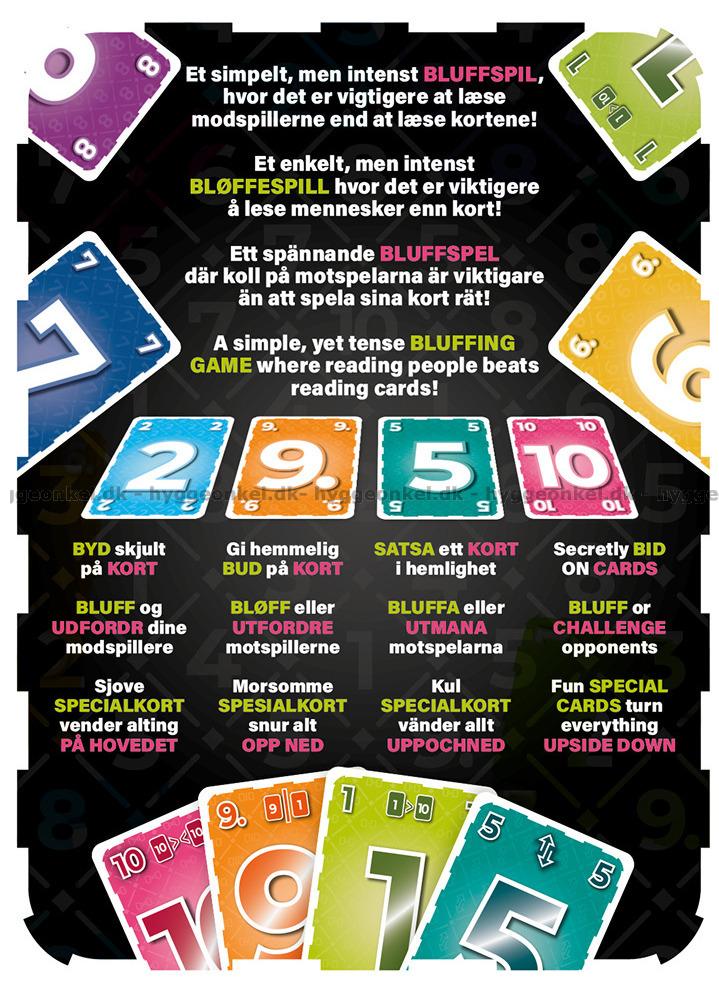 Bluffit er et morsomt spill hvor det gjelder å overliste motstanderne dine. Du må holde hodet kaldt, lese de andres intensjoner og utfordre på det helt riktige tidspunkt, for det er langt fra lett å spille det riktige kortet når alle rundt bordet kan være i gang med å bløffe. Målet er å score flest poeng ved å vinne de høyeste verdikortene gjennom spillets runder.