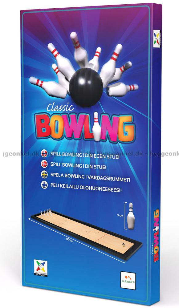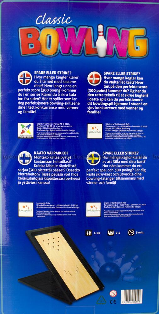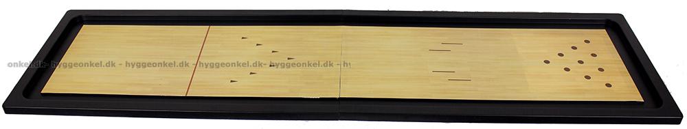 1 spillebrett i plast (som etterligner en bowlingbane i tre). Brettet kan klappes sammen når det ikke er i bruk. Det måler ca. 102 x 28 x 2 cm.