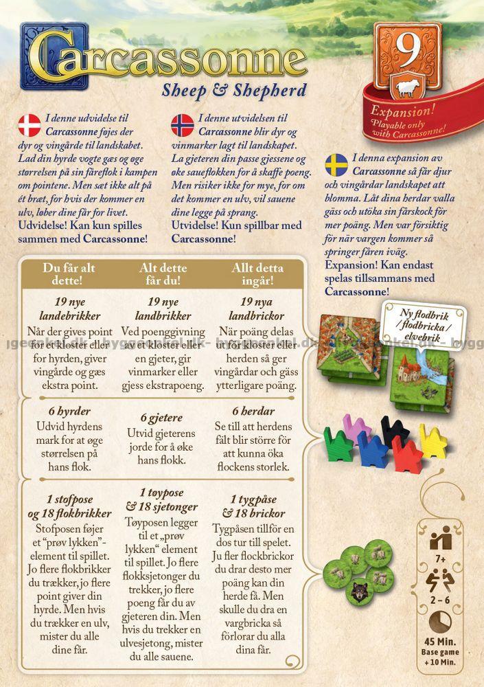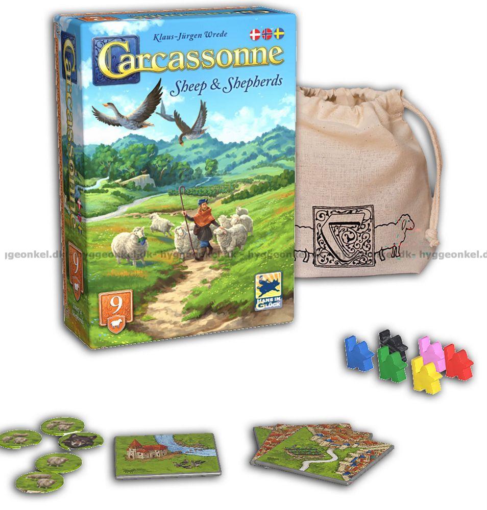 I Sheep & Shepherds får Carcassonne et snev av landlig idyll og den tilhørende trusselen fra ulven. Spillerne kan nå sende gjetere ut på markene for å samle sine egne saueflokker. Hver gang flokken vokser, øker også spenningen: fortsetter du å utvide, eller velger du å samle flokken før ulven dukker opp og ødelegger alt?