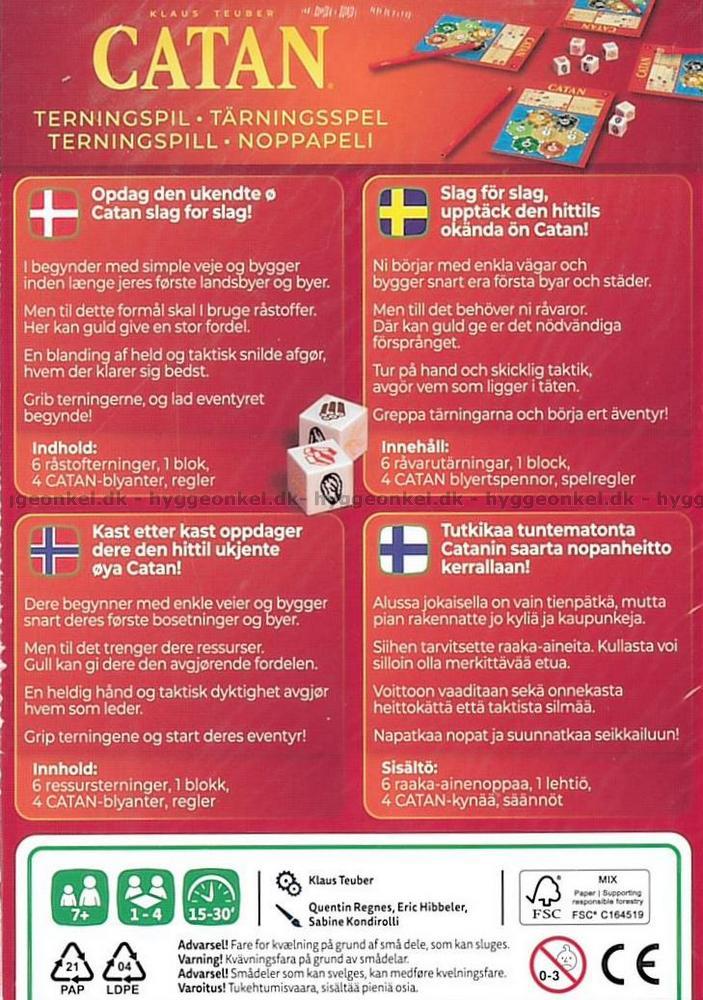 Catan: Terningespill er et terningespill i roll and write-format, hvor spillerne bygger veier, bosetninger, byer og riddere direkte på sitt eget spilleark.