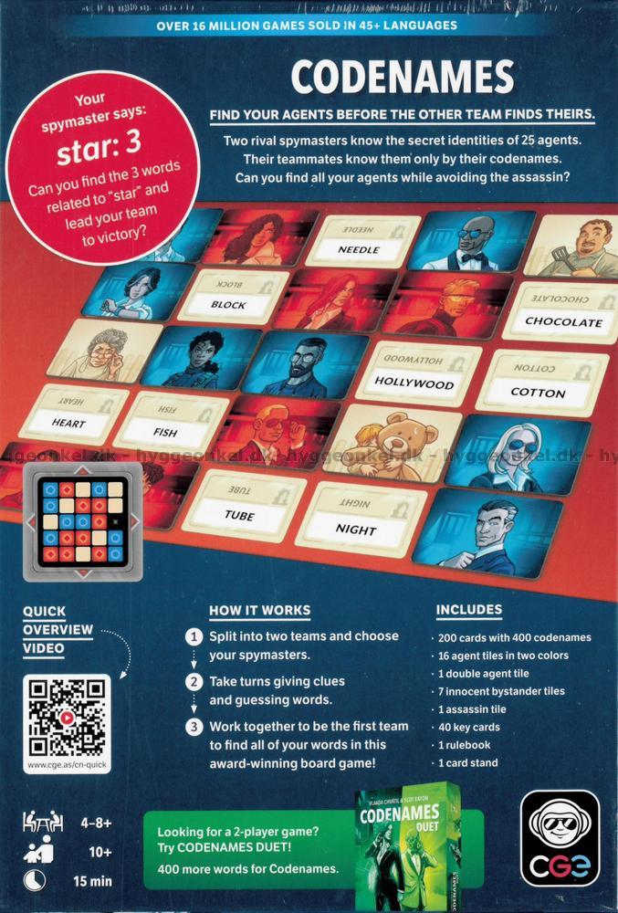 To rivaliserende spionsjefer kjenner den hemmelige identiteten til 25 agenter. Deres lagkamerater kjenner kun agentene ved deres KODENAVN.