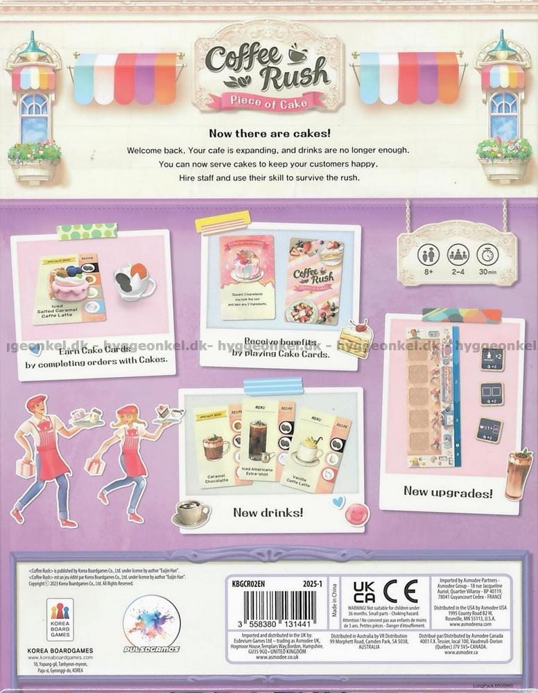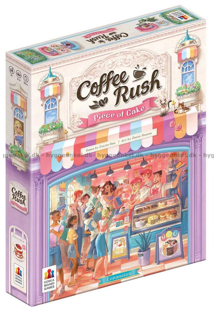 Coffee Rush: Piece of Cake er en utvidelse til Coffee Rush med nye muligheter og enda mer travelhet i kafeen. Nå handler det ikke lenger bare om å servere drikkevarer, men også om å håndtere kakebestillinger, som krever ekstra oversikt og planlegging.