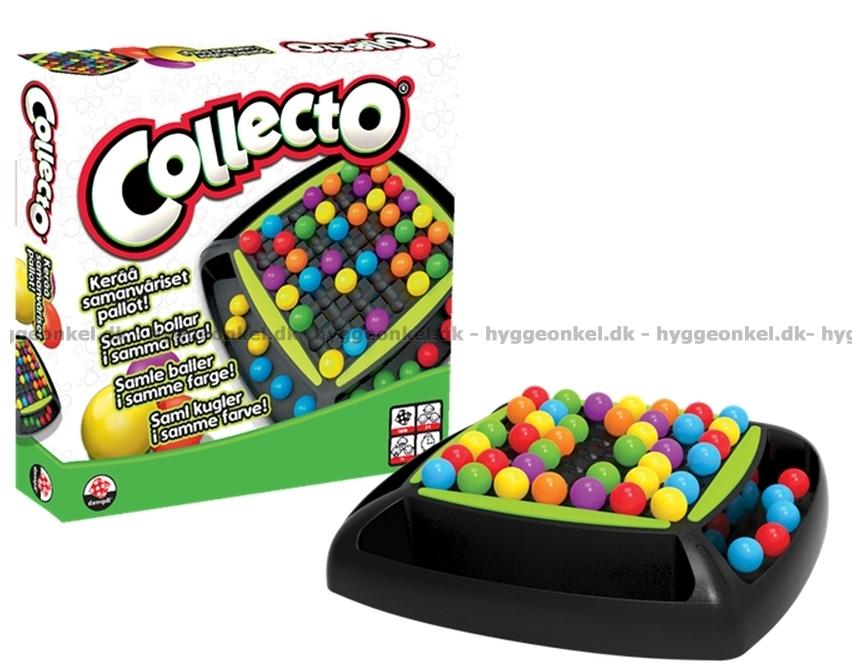 I Collecto gjelder det å tenke strategisk og få flyttet kulene rundt på brettet slik at de med samme farge ligger inntil hverandre. Når man får tre like kuler på rad, gir det poeng.