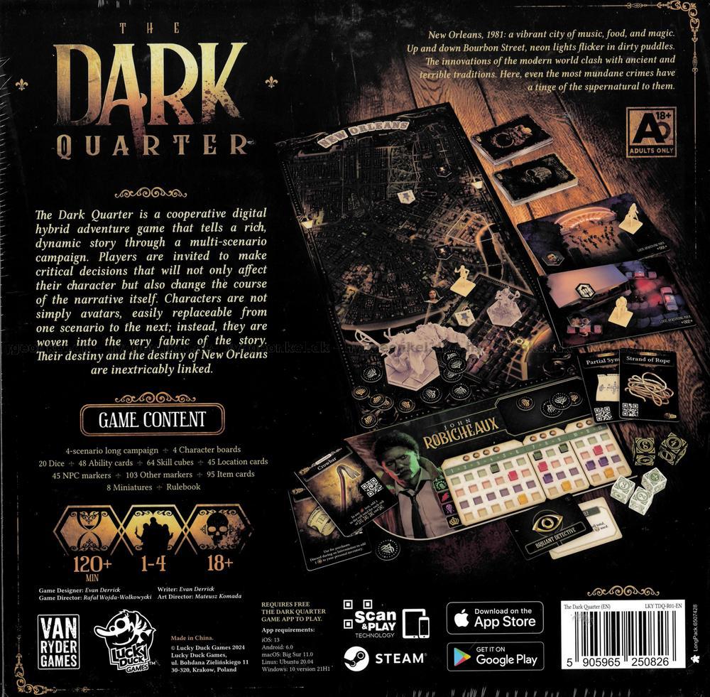 Dark Quarter er et samarbeidsbasert detektivspill som tar spillerne med inn i hjertet av et mystisk og mørkt New Orleans på 1980-tallet, der det okkulte og kriminalitet møtes.