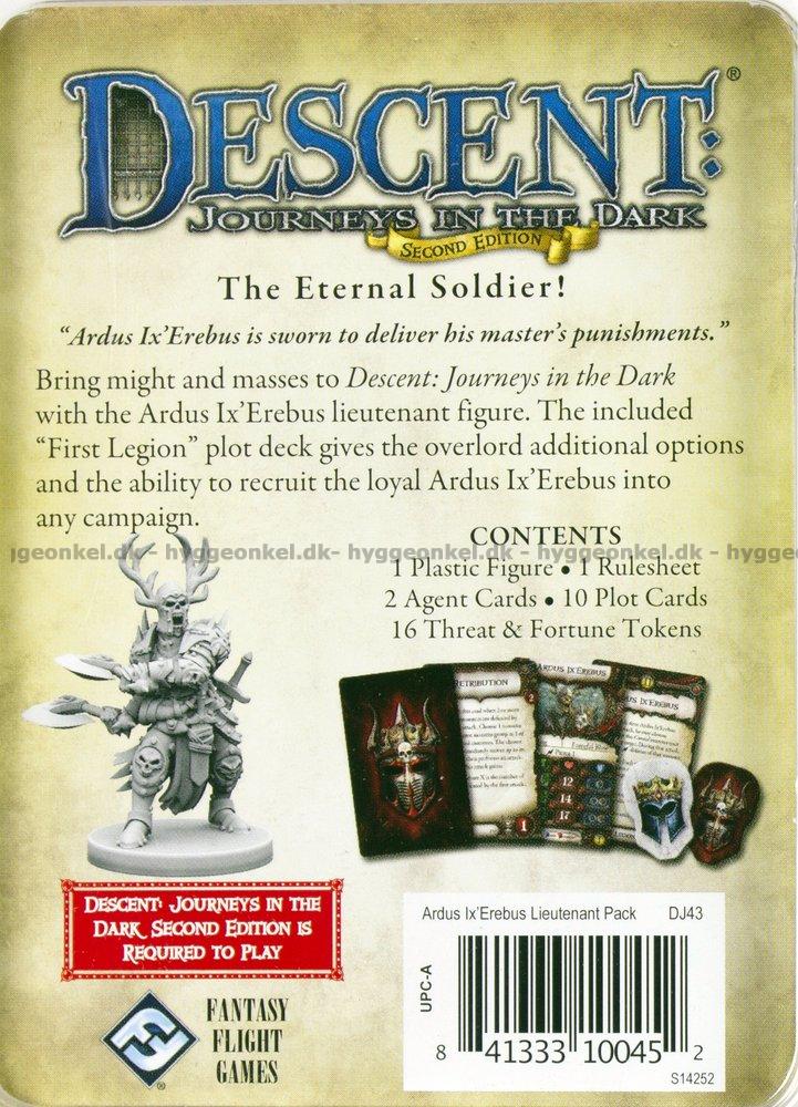 Esken inneholder 1 plastfigur, 1 sett spille-regler, nye kort og markører ("agent, "plot" & "threat/fortune").