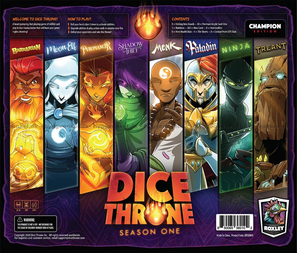 Dice Throne: Season 1 – Battle Chest er et fartsfylt og taktisk kampspill, hvor du trer inn i Mad King’s turnering og kjemper intense terningdueller med en av spillets åtte helt unike helter. Hver helt har sin egen spillestil, spesialdesignede terninger og et eget evnesett som gjør hver kamp ny, overraskende og full av strategiske muligheter.