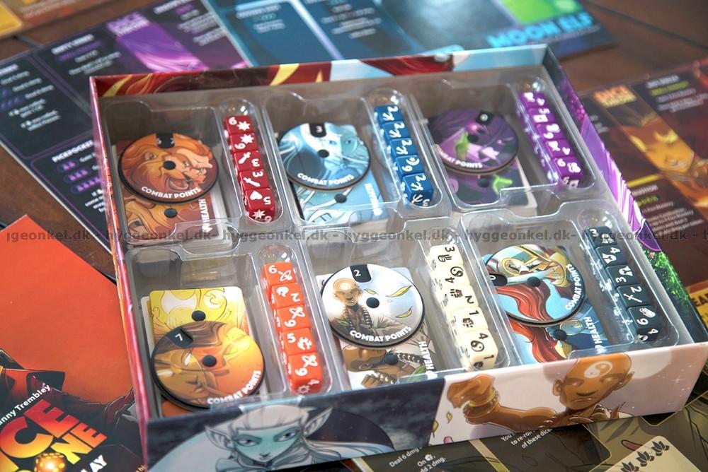 Terninger, kort og markører.