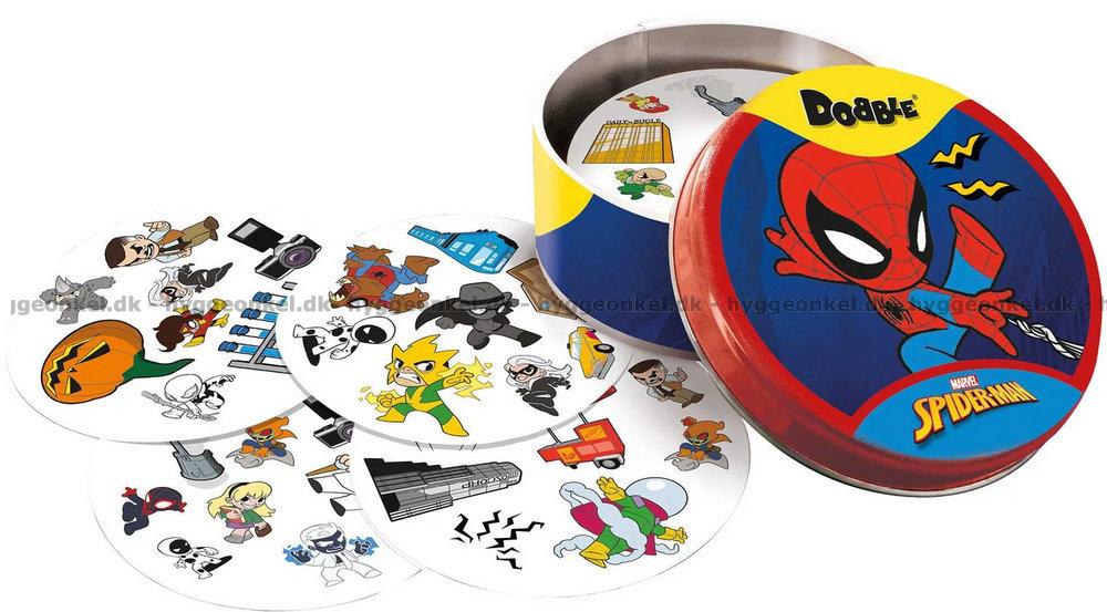 I denne utgaven av Dobble er motivene hentet fra Spider-Man-universet.