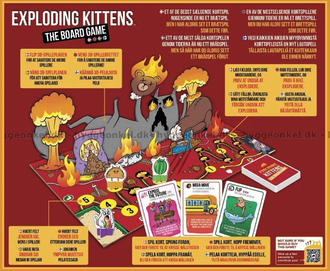 Exploding Kittens: The Board Game er fullstendig sprø moro for alle som elsker humor, risiko og katter med eksplosive personligheter.