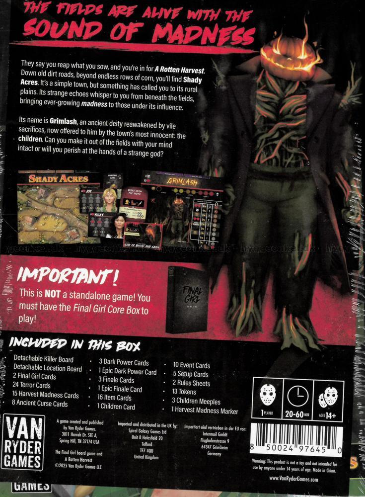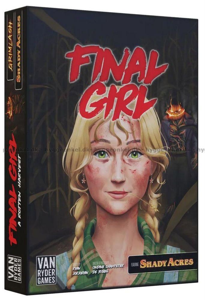 Final Girl: A Rotten Harvest fører deg dypt inn i en landlig gru, hvor gamle jordveier slynger seg mellom endeløse maisåkre, frem til den lille byen Shady Acres. På overflaten virker alt stille og enkelt, men noe i åkrene kaller på deg – en hvisken under jorden, en voksende galskap som sprer seg som ugress i sinnet til dem som tør å lytte. Bak denne mørke kraften står Grimlash, en eldgammel guddom vekket til live igjen gjennom avskyelige ofre, nå begått av byens egne barn. Som den siste som fortsatt står imot, må du kjempe for både kroppen og forstanden din i et mareritt hvor hvert steg på jorden kan være ditt siste. Klarer du å unnslippe åkrene med sjelen i behold, eller vil du bukke under for en altoppslukende, fremmed gud?