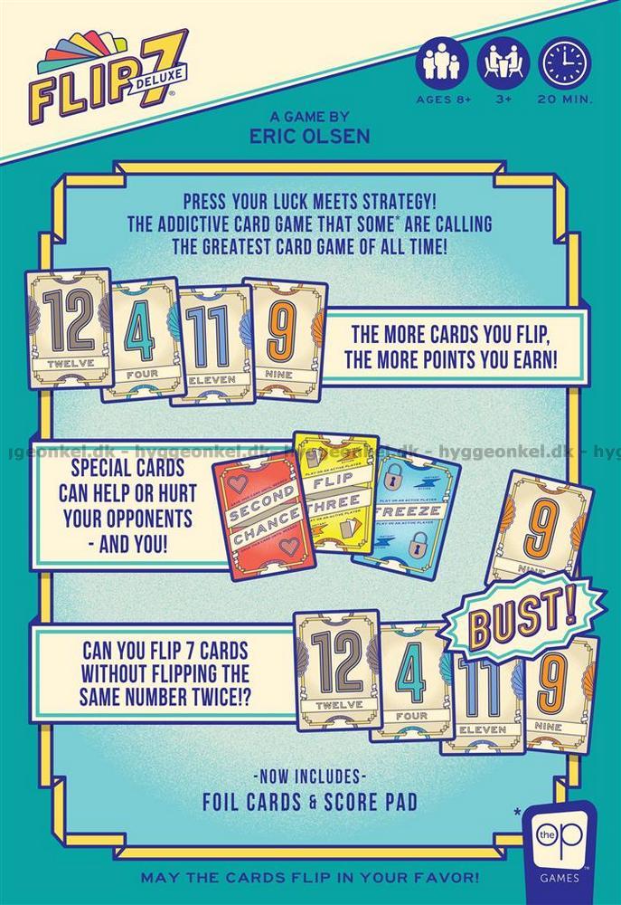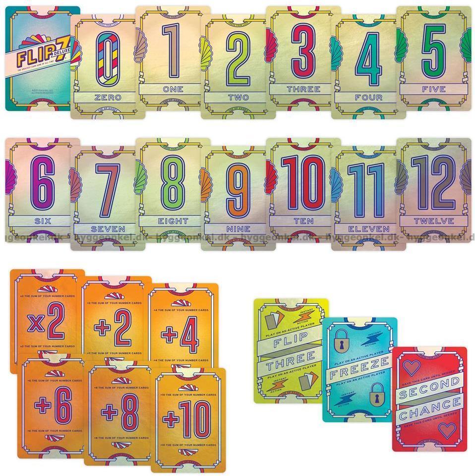 Denne Deluxe-utgaven er det samme spillet som vanlig Flip 7 – kortene har fått en flottere finish.