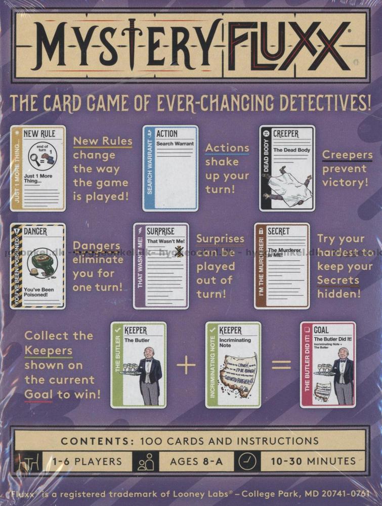 Fluxx: Mystery er et uforutsigbart og intenst kortspill hvor reglene og målene hele tiden endres.