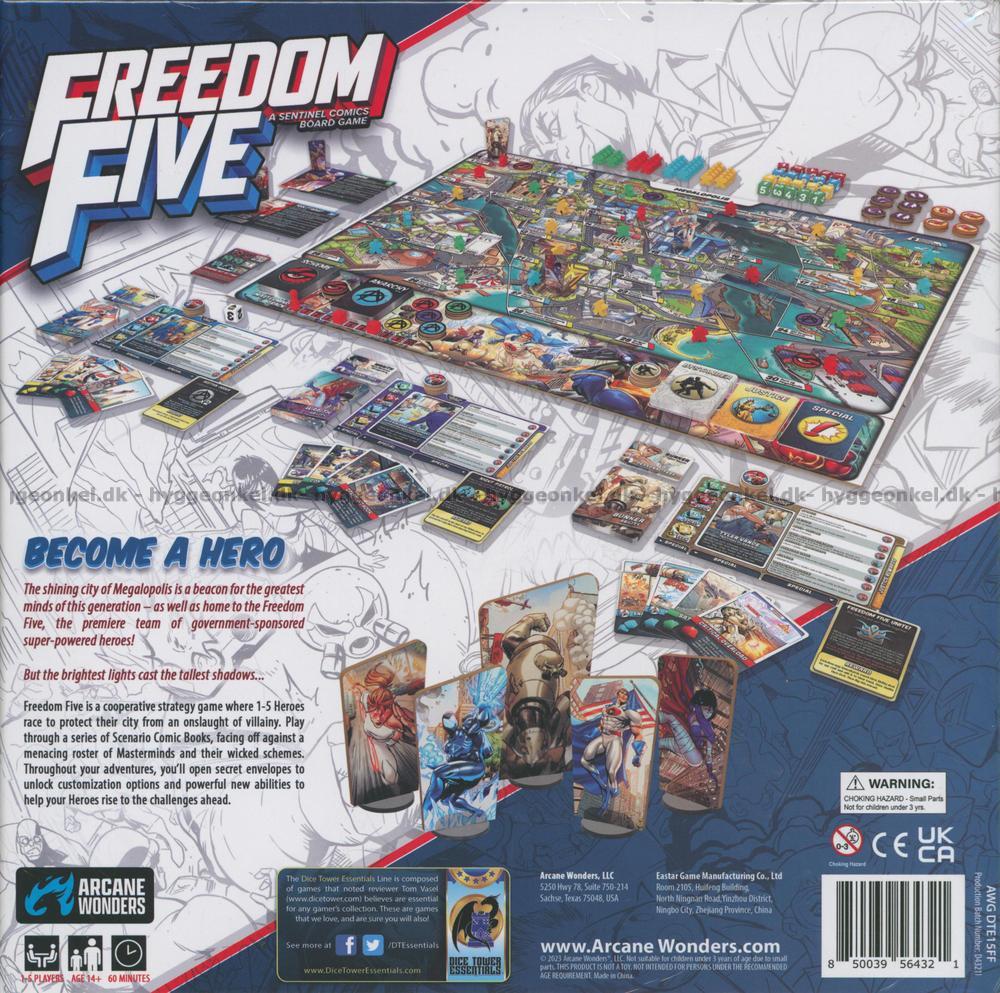 Freedom Five er et samarbeidsbasert strategispill hvor 1-5 spillere tar rollen som superhelter som beskytter storbyen Megalopolis mot skurkens onde planer.