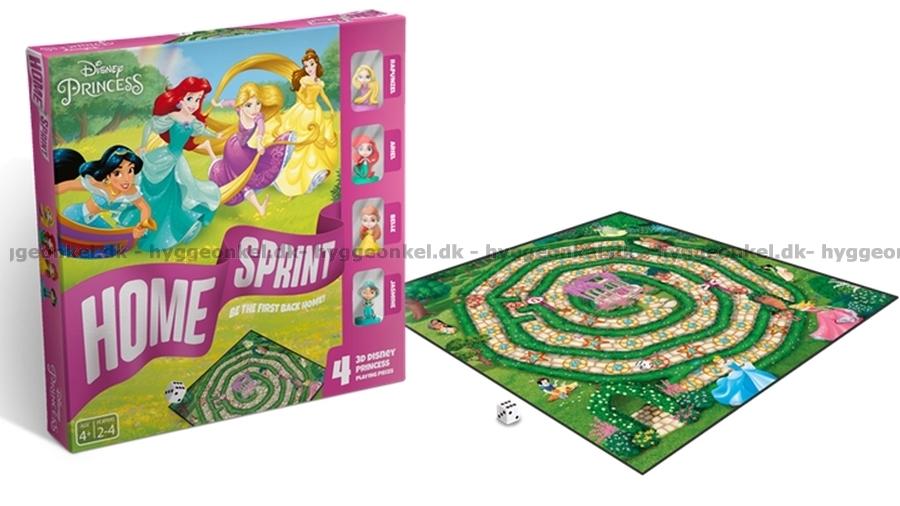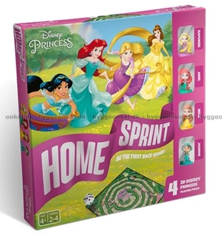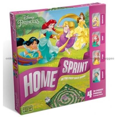 Spillebrett, 1 terning og 4 prinsessefigurer. Figurene er 3 cm høye.