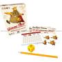 Blokk med 100 ark potetrekker, blyant, terning og 20 klistremerker.
