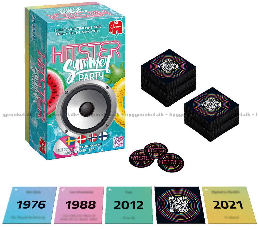 Hitster: Summer Party er den festlige utgaven av det populære musikkspillet Hitster, hvor de største sommerhitene fra de siste tiårene setter stemningen. Her er det sol, varme vibber og ikoniske ørevarmere som danner rammen for en morsom og energifylt spillopplevelse, hvor alle kan være med. Enten minnene går tilbake til 90-tallets strandfester eller nyere radiofavoritter, er det duket for gjenkjennelsens glede og masse allsang.