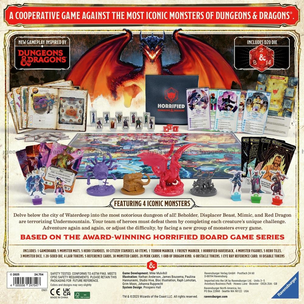 Horrified: Dungeons & Dragons er et samarbeidsspill inspirert av den populære Horrified-serien. Denne utgaven foregår i Undermountain, det enorme og monsterfylte hvelvet under Waterdeep i Forgotten Realms.