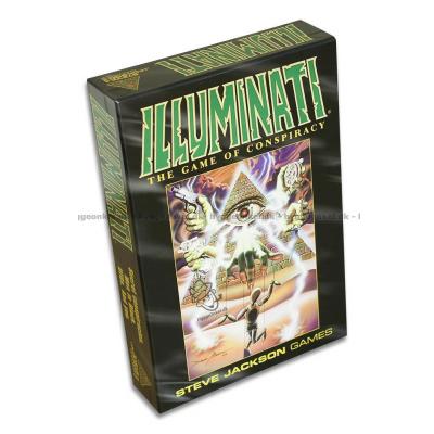 Esken inneholder kort, terninger og markører samt engelske spilleregler.