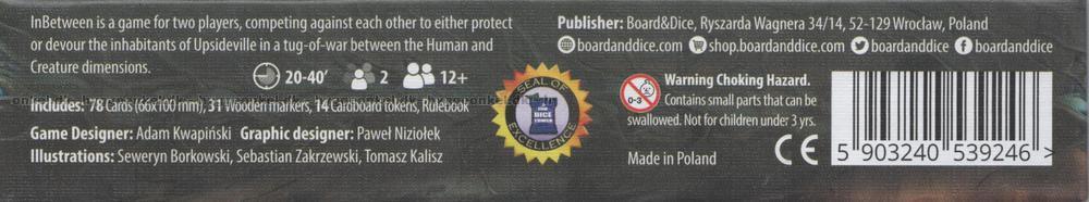 I spillet InBetween forsøker den ene spilleren ("Skapningen") å fortære innbyggerne i den idylliske byen Upsideville ved å trekke dem lengre inn i sin egen dimensjon, mens den andre spilleren ("Byen") forsøker å beskytte innbyggerne. Spillerne bytter på å spille kort og bruke sine egenskaper til å trekke karakt-erene nærmere enten monsterets eller menneskenes dimensjon. Samtidig skal de øke sin "awareness", noe som gir dem adgang en mektig egenskap som kun kan brukes én gang i løpet av spillet - med stor effekt.