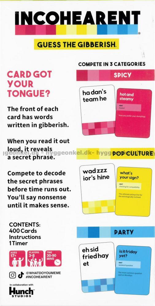 Spillet er på engelsk. Det er en del engelsk tekst på kortene.