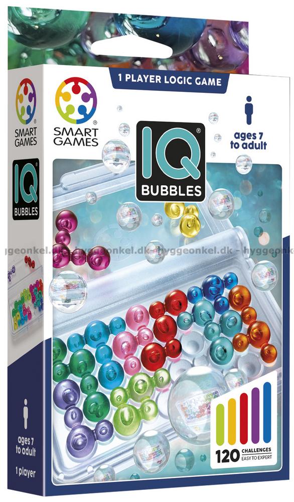 I IQ Bubbles skal du plassere de fargerike og gjennomsiktige boblebrikkene på spillebrettet. Hver utfordring starter med at du plasserer noen av brikkene slik det vises i oppgaveheftet, og deretter må du finne den helt riktige måten å få de resterende brikkene til å passe. Kun én løsning er korrekt.