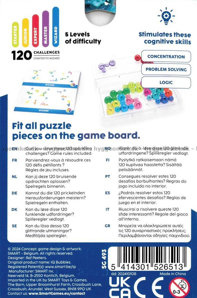 Spillet er fra Smart Games, som har mange morsomme og utfordrende hjernetrim for 1 spiller.