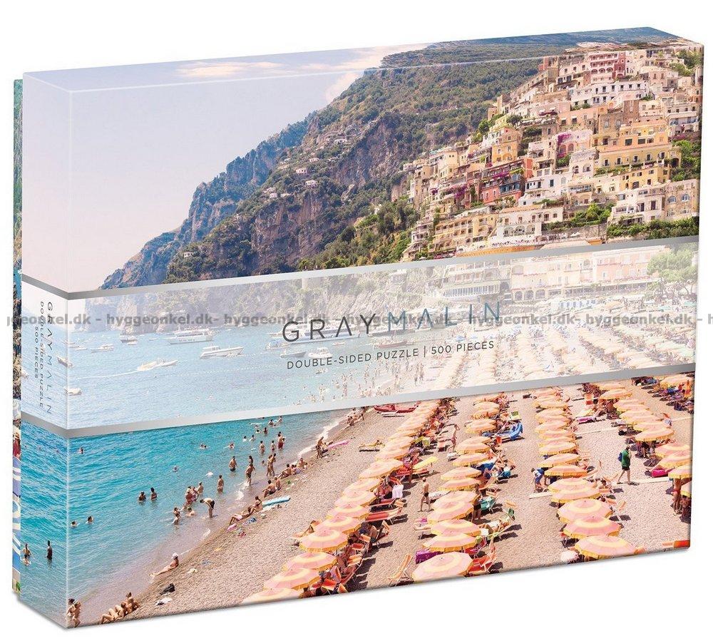 - Puslespillet er tosidig. Du kan altså lage 2 forskjellige motiver med de samme brikkene. Motivene er tegnet av Gray Malin