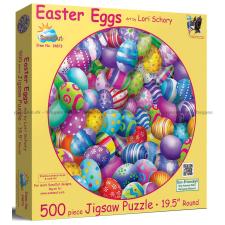 - En overflod av fargerike påskeegg som er spredt ut i en rund form. Hvert egg har sin egen unike dekorasjon, noe som skaper en festlig og livlig stemning