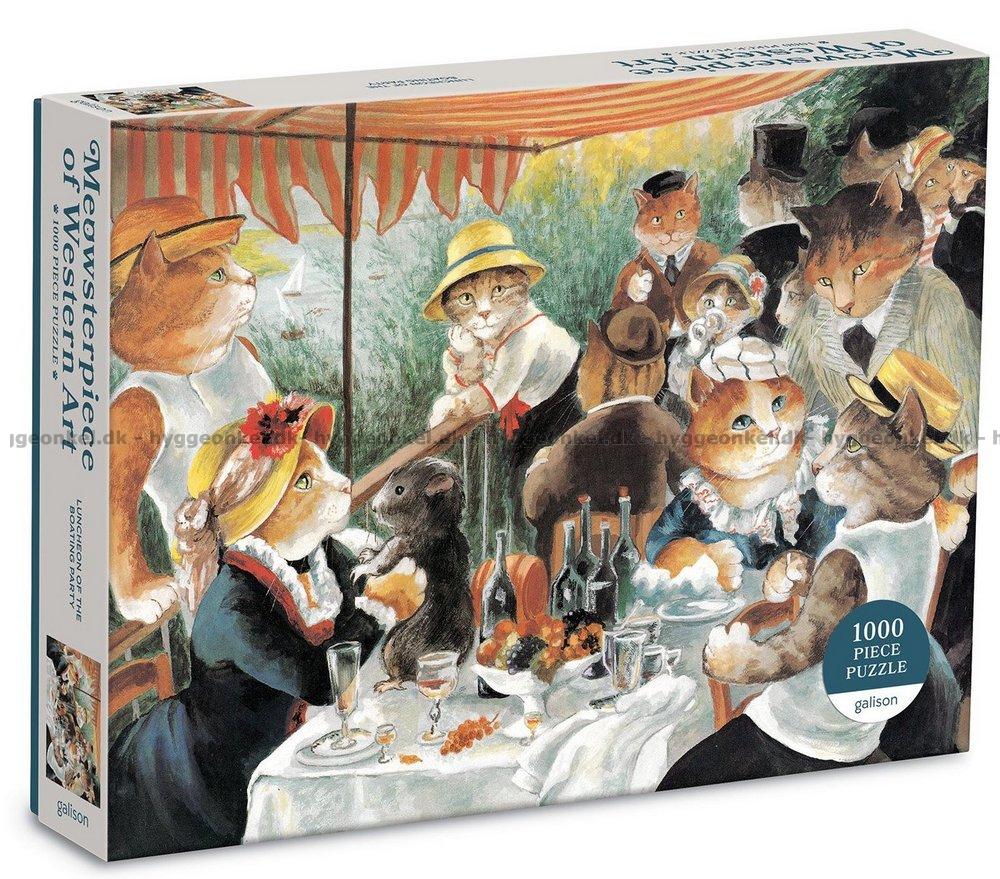 - Et koselig motiv med sterk inspirasjon fra Renoirs maleri "Frokost i det grønne" – her har kattene inntatt frokostbordet