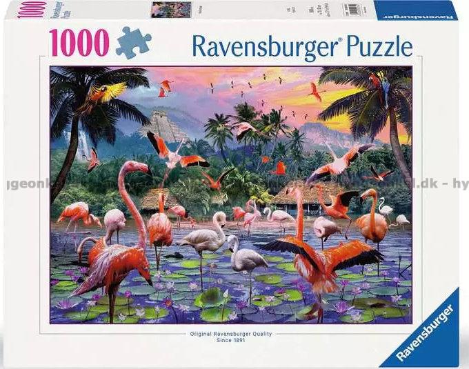 - En rekke flamingoer har slått seg ned ved det grunne vannet
