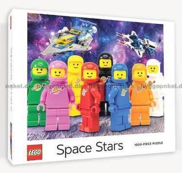 - En gruppe fargerike LEGO-astronauter som står foran en stjernehimmel. To romskip svever i det fjerne, klare til å utforske universets mysterier
