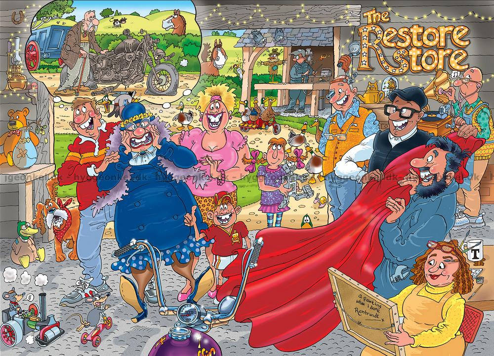 - Dette er et Wasgij-puslespill. Du skal ikke legge forsiden av esken som i tradisjonelle puslespill, men forestille deg hva damen har fått øye på og legge det motivet.