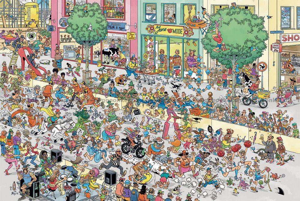 - Motivet er en del av Jan van Haasteren-serien, som består av en rekke humoristiske motiver med mange detaljer
