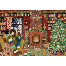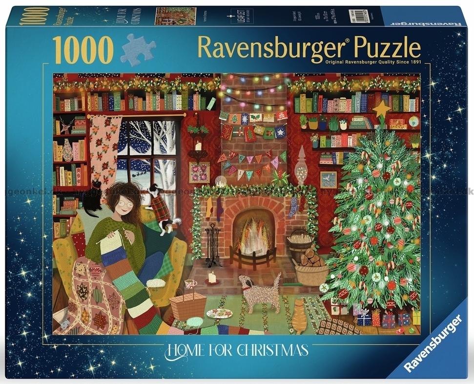 - Kvinnen sitter i lenestolen og strikker. Stuen er pyntet fint til jul