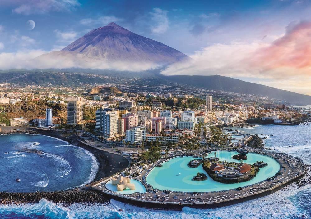- Puerto de la Cruz på nordkysten med vulkanen Teide i bakgrunnen