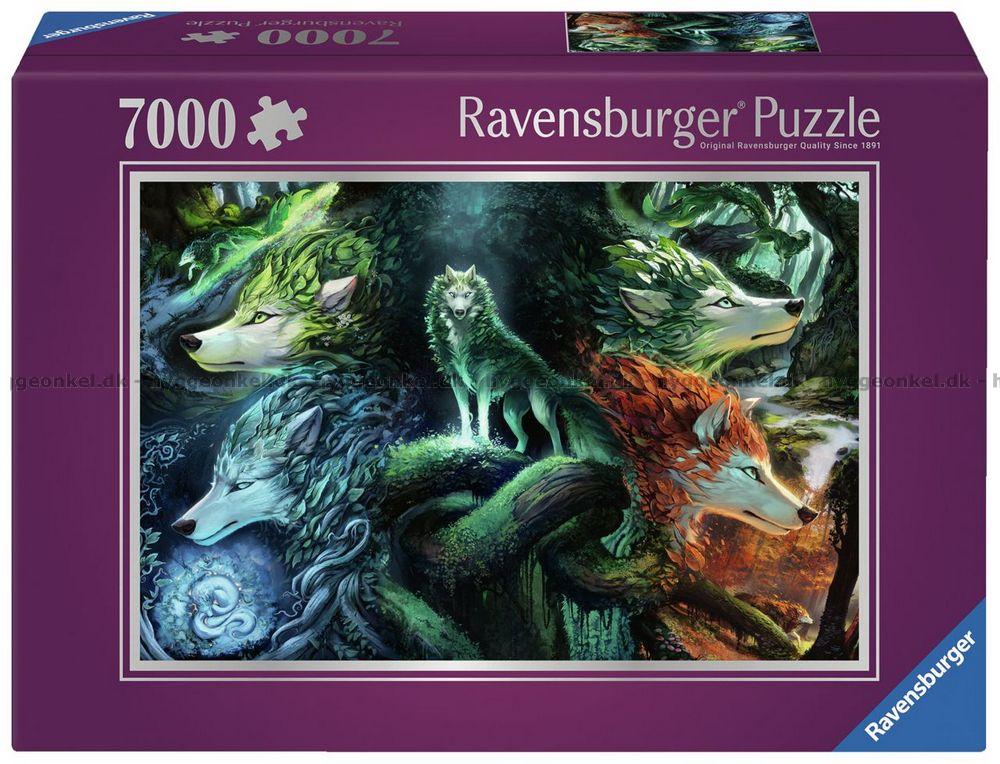 - Hver ulv symboliserer en årstid. Puslespillet er delt opp i 2 poser med 3 500 brikker i hver.