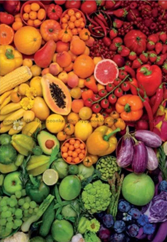 - De flotte og fargerike fruktene og grønnsakene arrangert som en regnbue