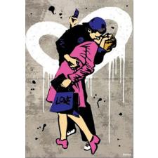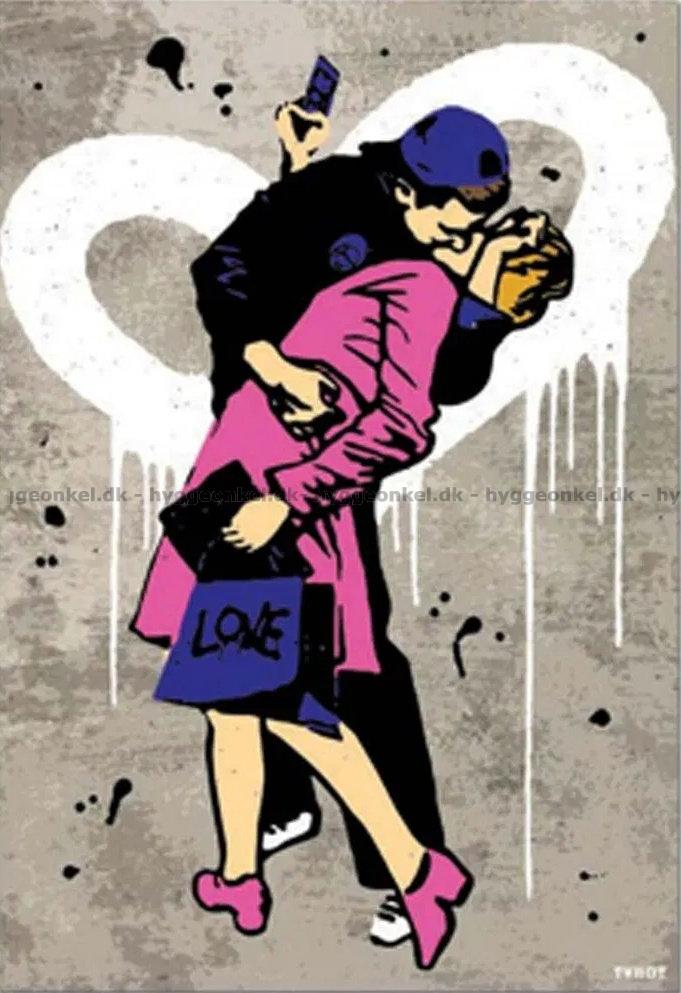 - Det unge paret kysser lidenskapelig foran veggen med et stort hvitt hjerte