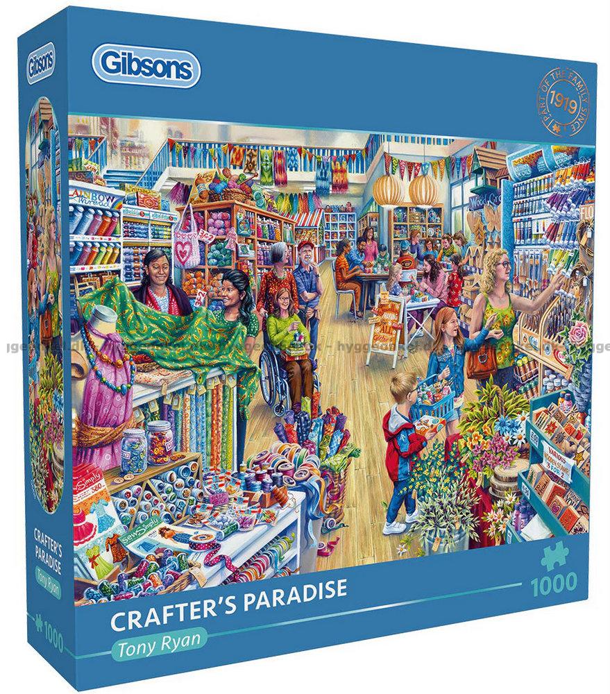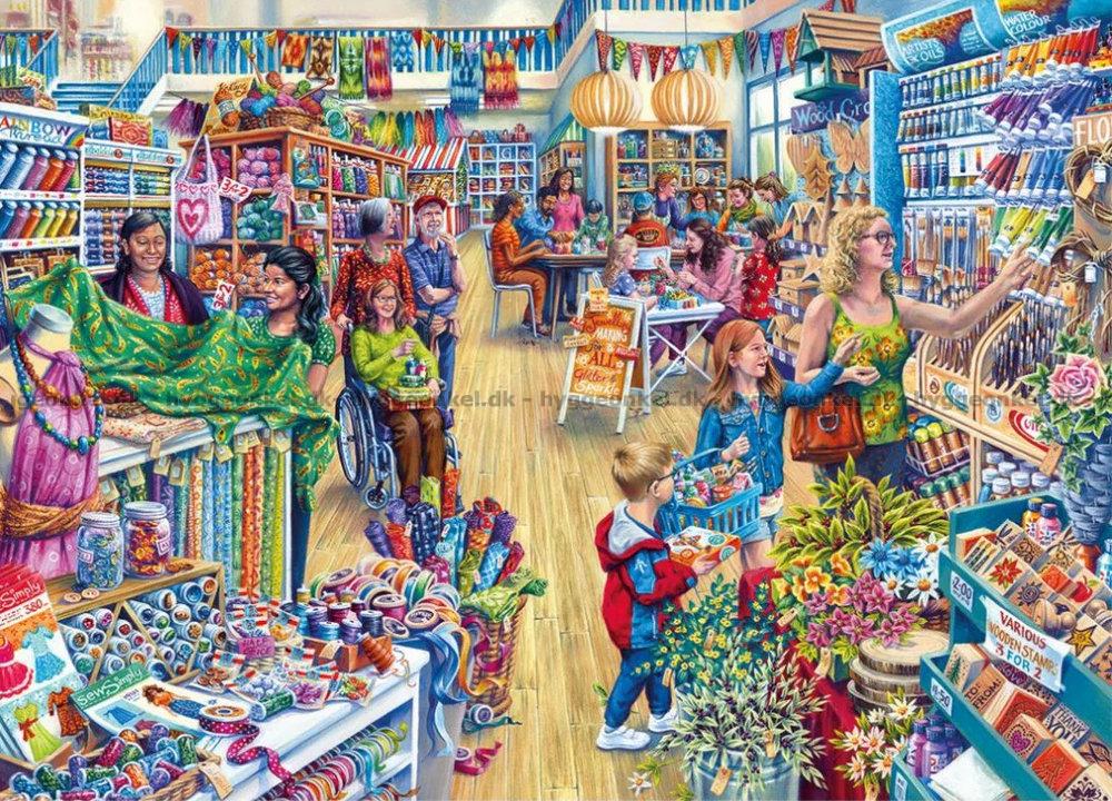 - Hyller og bord er fylt med trådsneller, knapper og andre fine saker for den kreative