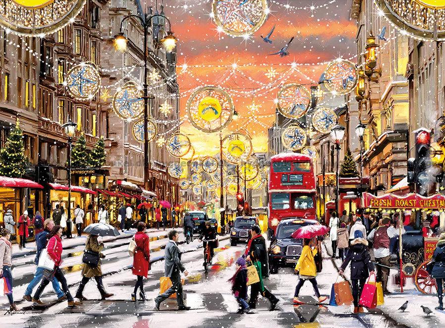- Richard Macneil har tegnet dette koselige julemotivet fra den engelske hovedstaden
