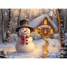 - Foran det koselige huset står en snømann og ønsker velkommen. Det er et bilde som innbyr til fordypning og ro, hvor man kan la tankene vandre sammen med vinterens vokter.