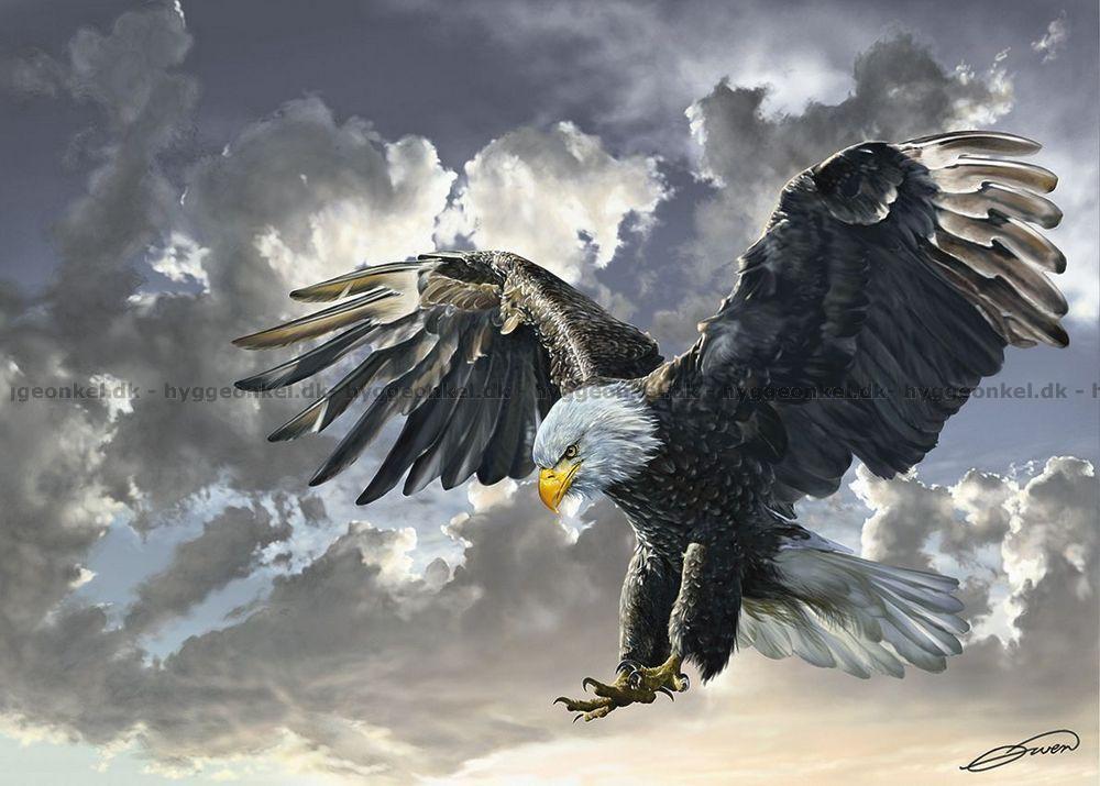 - Den imponerende ørnen svever gjennom luften med sine store, utspredte vinger