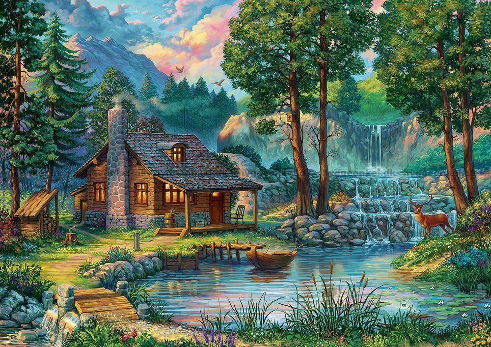 - Foran den sjarmerende tømmerhytta ligger en koselig innsjø