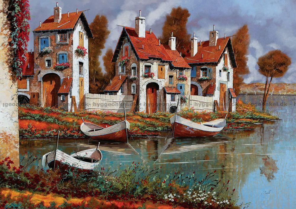 - Båtene flyter rolig rundt ved den lille landsbyen