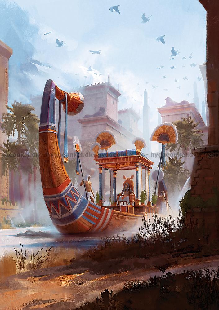 - I midten av den storslåtte båten sitter en farao under en praktfull baldakin