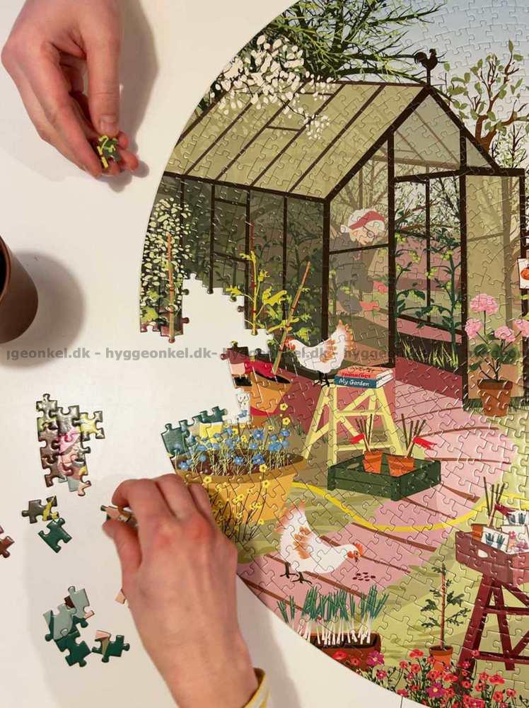 Hagearbeid i solskinn - Rundt puslespill, 1000 brikker