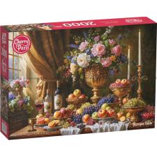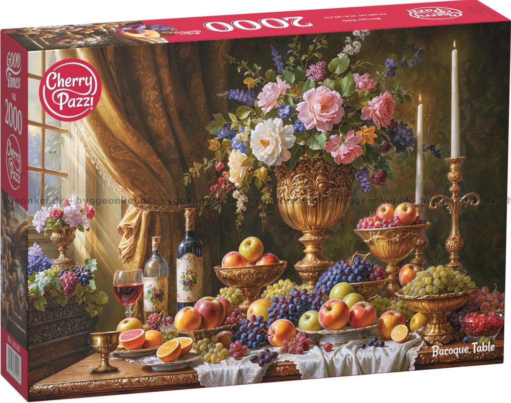 - Et overdådig bord fylt med frukt og blomster i barokk stil