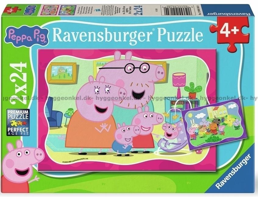 - I denne esken får du 2 Peppa Gris puslespill. Begge motivene er anbefalt fra 4 år