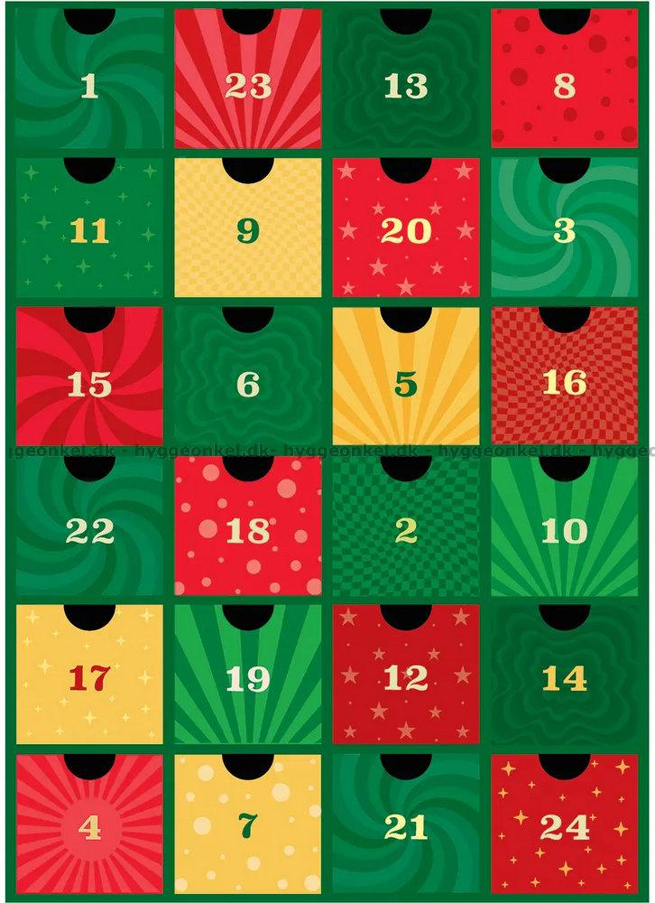 - Åpne en ny luke hver dag – 24 luker totalt. Hvert motiv består av 50 brikker – totalt 1200 brikker. Det er 24 små puslespill – de kan ikke settes sammen til ett stort